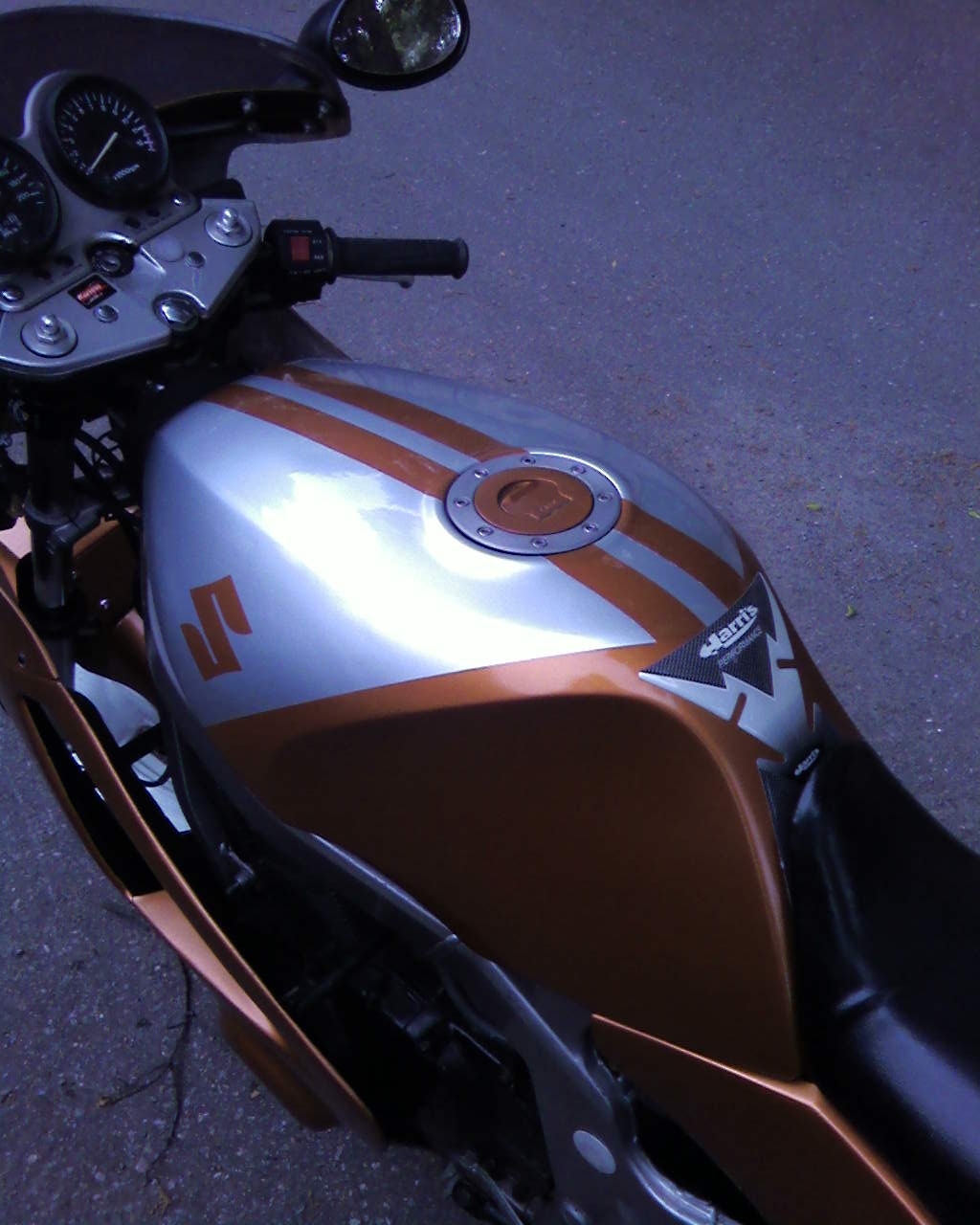 Die Farbe rockt! Wenn du zu dem Tankpad keine emotionale Beziehung hast, würde ich das evtl. noch tauschen. Und kann es sein, dass dein Kennzeichen unbeleuchtet ist? Noch nen Satz schlanke Rasten und den Forumskettenschutz und schon geht die Luzi aber sowas von ab feini feini!