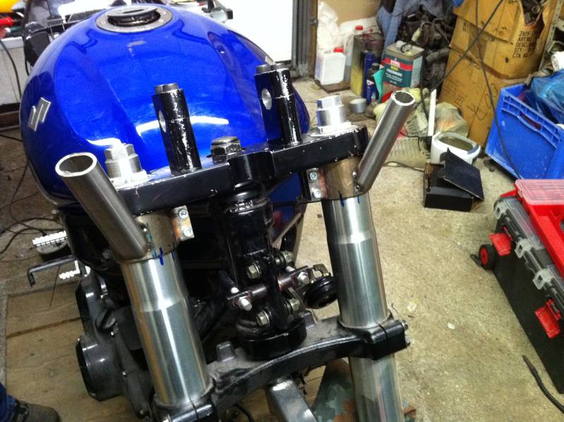 Wir haben bestimmt ein Jahr rumgemacht wegen der Stummel, und nu machen wir sie einfach wie wir sie brauchen. Gabelbrücke oben ist ja auch schon ein Eigenbau., eigentlich für den SBL, aber die mach ich nochmal neu, nur ohne die ganzen Bohrungen, also quasi als reine Brücke ohne Aufsatz.