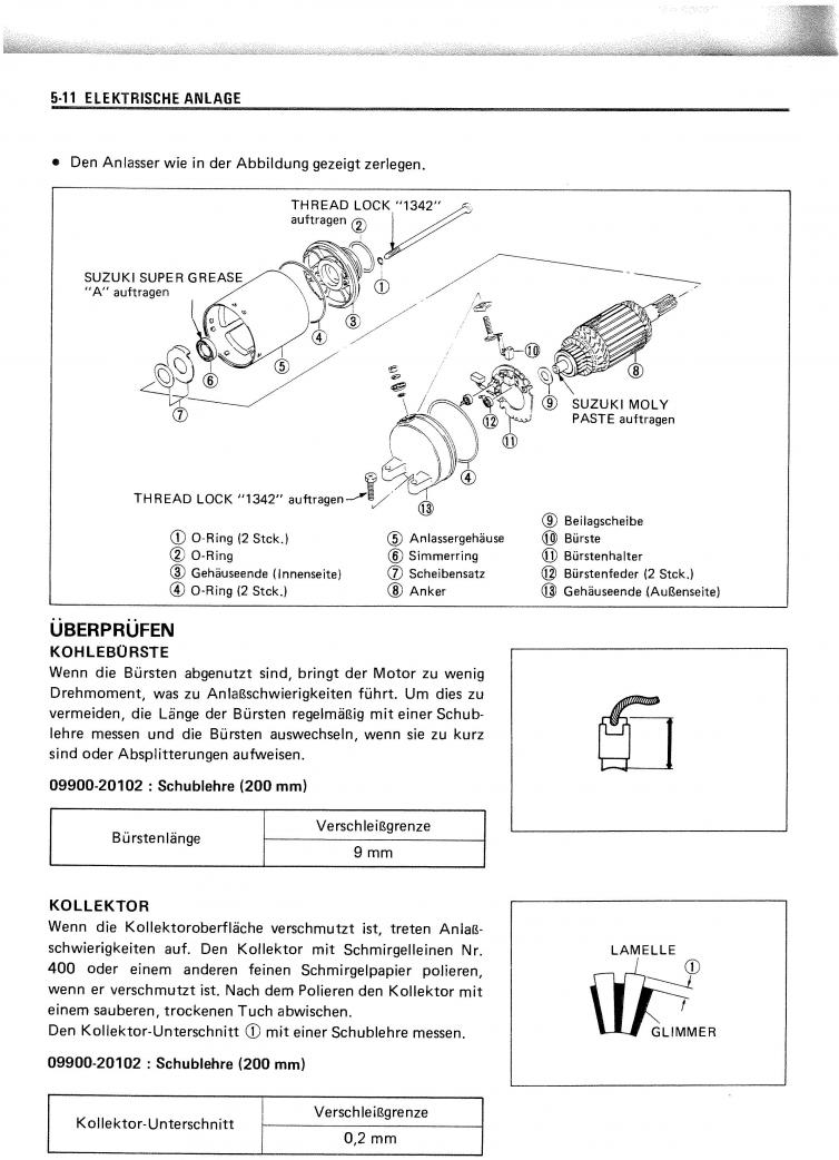 Nochwas zum Anlasser: Der Kolektor+Zwischenraum muss sauber sein - sonst steigt der Widerstand enorm an und so eine kleine Motorradbatterie hat keine Chance.........