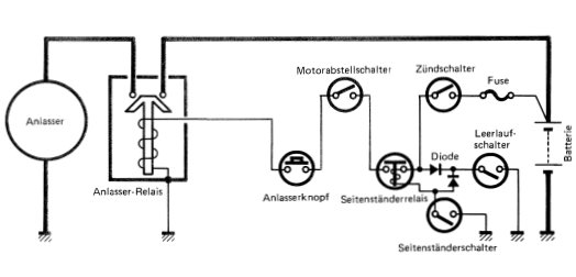 Der Anlasserknopf schaltet nicht auf Masse, sondern zur Zündbox, also Plus.