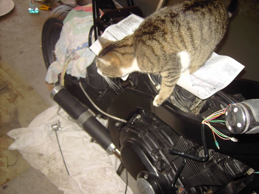 [attachment=2:2xsra1wf]PICT0734.JPG[/attachment:2xsra1wf][attachment=1:2xsra1wf]PICT0736.JPG[/attachment:2xsra1wf] Hab den ganzen tag über die suzi geladen und nachdem ich mit ölwechsel schlimbims usw mit der shadow fertig war war se voll...also musste ichs unbedingt testen....und ich hab einfach das besste mopet der welt gekauft damals...ein knopfdruck ohne choke und die hat geschnurrt wien kätzchen...braves suzi falls es was anderes sein könnte bitte sagts mir glei bescheid.... achja und drehzahlmesser geht nicht (vom neuen Tacho) hab ihn mit dem y-kabel mit der unteren seite also dem schwarz/irgendwas kabel an der rechten zündspule verbunden wies in gs-info steht...hmpf naja nachdem ja wenigstens die blinker einwandfrei funzen nochn abschlussbild (sind noch nicht festgeschraubt und ja leider vorschriftsmäßig so weit auseinander) [attachment=0:2xsra1wf]PICT0737.JPG[/attachment:2xsra1wf] ich hoff morgen wird sie endlich fertig denn gibts rundumsonnen bilder |