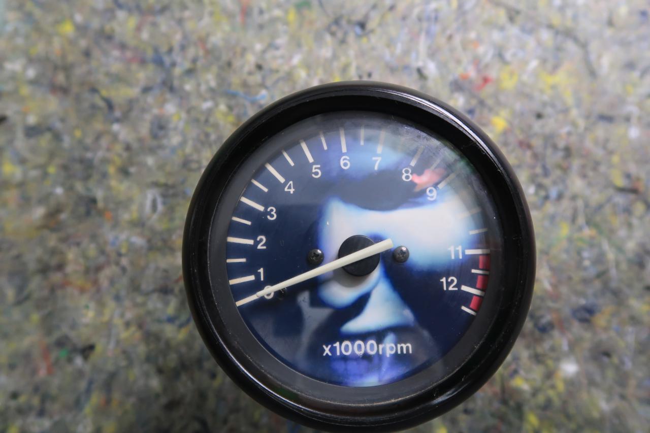 Ich habe den Originaltacho ja wieder aufgebördelt. Dann musste ich aber feststellen, dass beim alten Tacho ja diese (defekte) Vollflächen- LCD Leuchtplatte als Träger für die bunte Tachobilfdfolie verbaut war, beides für mich unbrauchbar. Ich hätte nämlich dafür neue Tachoscheiben gebraucht. Gibt es zwar in der Bucht aus Polen für 39.-€, das war mir für 2 Zifferblätter aber zu viel… Hab mir dann für das gleiche Geld die gebrauchte Tacho-/Drehzahlmesser Kombi gekauft. |