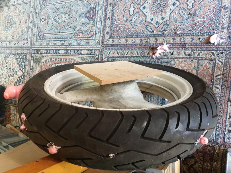 So gerade mal die Luft im Hinterrad Stehlampe durch PU Schaum ersetzt. Samstag dann der finale Schnitt an der Bandsäge und dann lackieren und montieren.