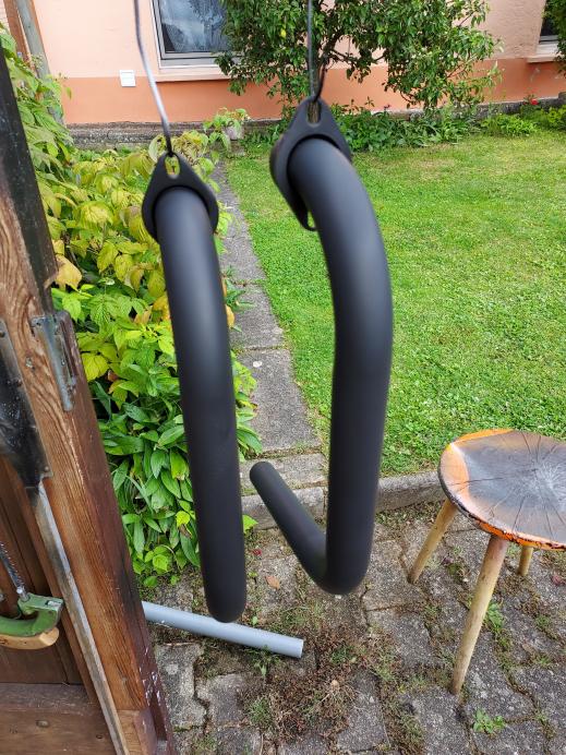 So die Krümmerrohre sind ganz gut geworden nach 2mal lackieren und einbrennen mit ca. 600°.