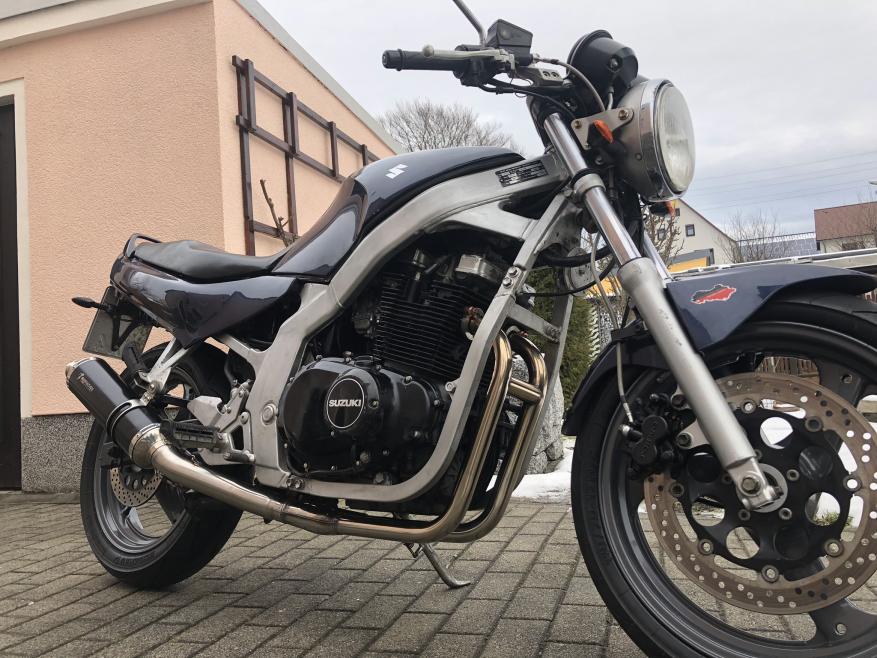 Vergaser eingebaut, Suzi wieder komplettiert, Probelauf mit neuem Auspuff.