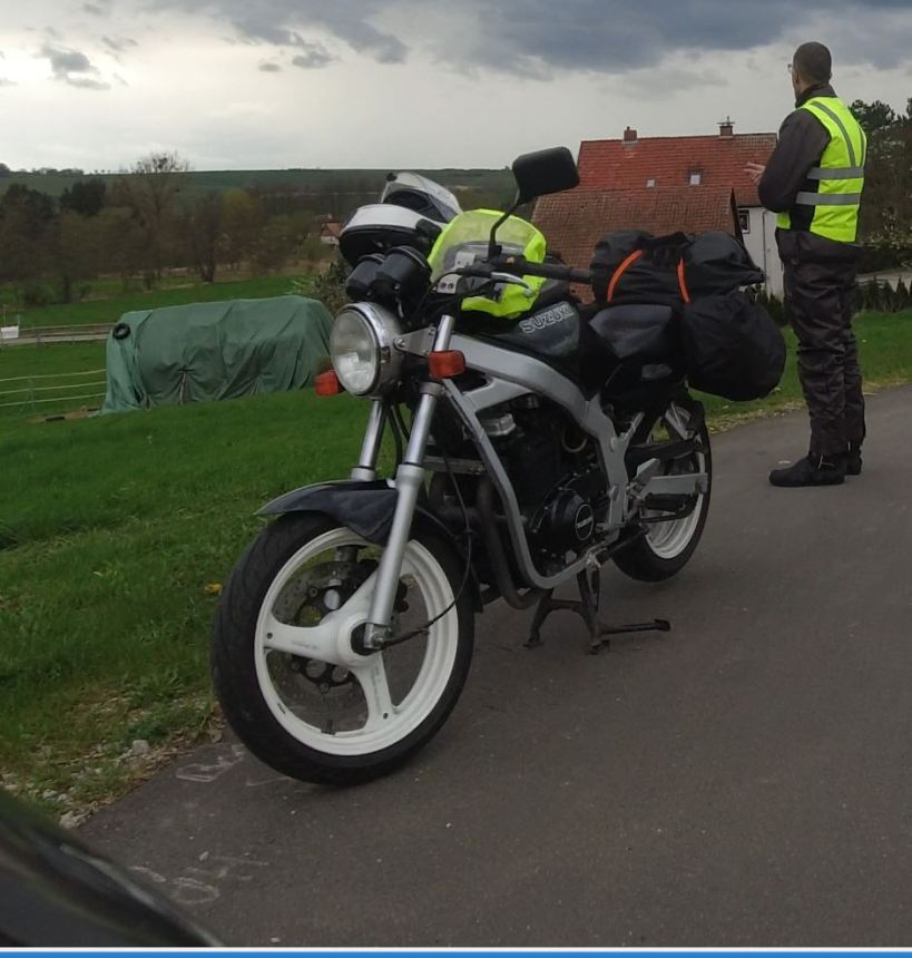 Gerade eben zwischen Bremke und Bögerhof eine nackte GS mit Sportauspuff.