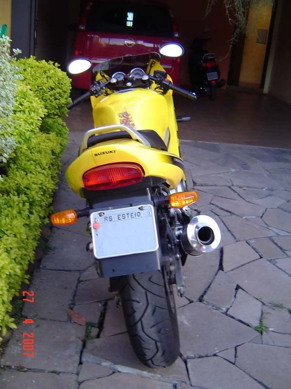 My name is Juliano, i'm from Brazil, and I have a forum about the Suzuki GS500 named GS500 Online (http://www.gs500online.com.br) a couple of members here from gs-500.de posted there their bikes, so i want to post mine here It's a yellow GS500E 2002 transformed into a GS500R, it has Navarone inox exhaust system, K&N filter and Dynojet stage 1. http://i23.photobucket.com/albums/b3...rone_longe.jpg http://i23.photobucket.com/albums/b3...e_traseira.jpg Here are some older pictures (actually, not so old http://i23.photobucket.com/albums/b3...6/diagonal.jpg http://i23.photobucket.com/albums/b3...996/frente.jpg http://i23.photobucket.com/albums/b3...996/painel.jpg |