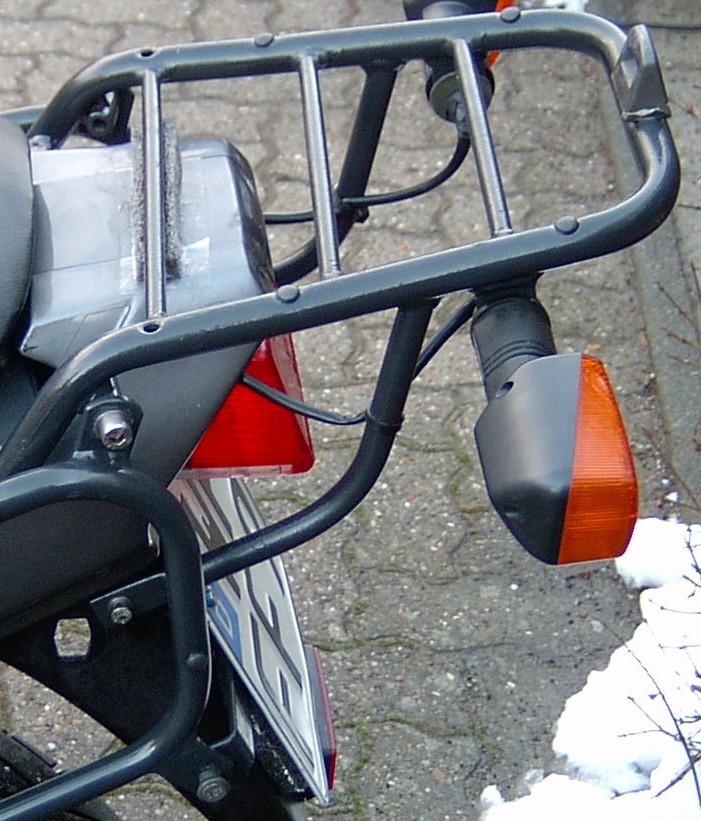 wichtig ist, dass der Gepäckträger sich nicht durchbiegt und unter Belastung auf die Heckverkleidung drückt. Mir hat die Beladung mit dicker Louis-Rolle den Lack an dem "Zwischenstück" runiert. Die hinteren Abstützungen sind bei vielen "Kaufträgern" zu dicht nebeneinander Da passt oft nur ein kleines Kennzeichen zwischen. Mach mal Bilder wenn du "gebaut" hast.