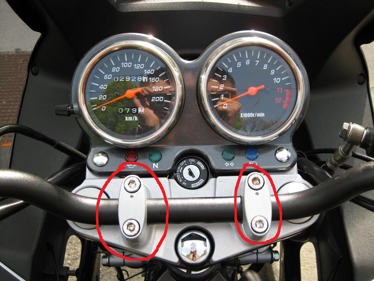 1. gegen die Gabelbrücke der älteren GS tauschen (da hast du dann vorn rechts und lins 2 Gewindelöcher wo vorher die Stummelhalter angeschraubt waren) 2. ein Stück 22mm (Außendurchmesser) Rohr zwischen die Klemmböcke packen und als Uhr/Navi/Kompasshalterung nutzen. 3. Einfach so lassen.