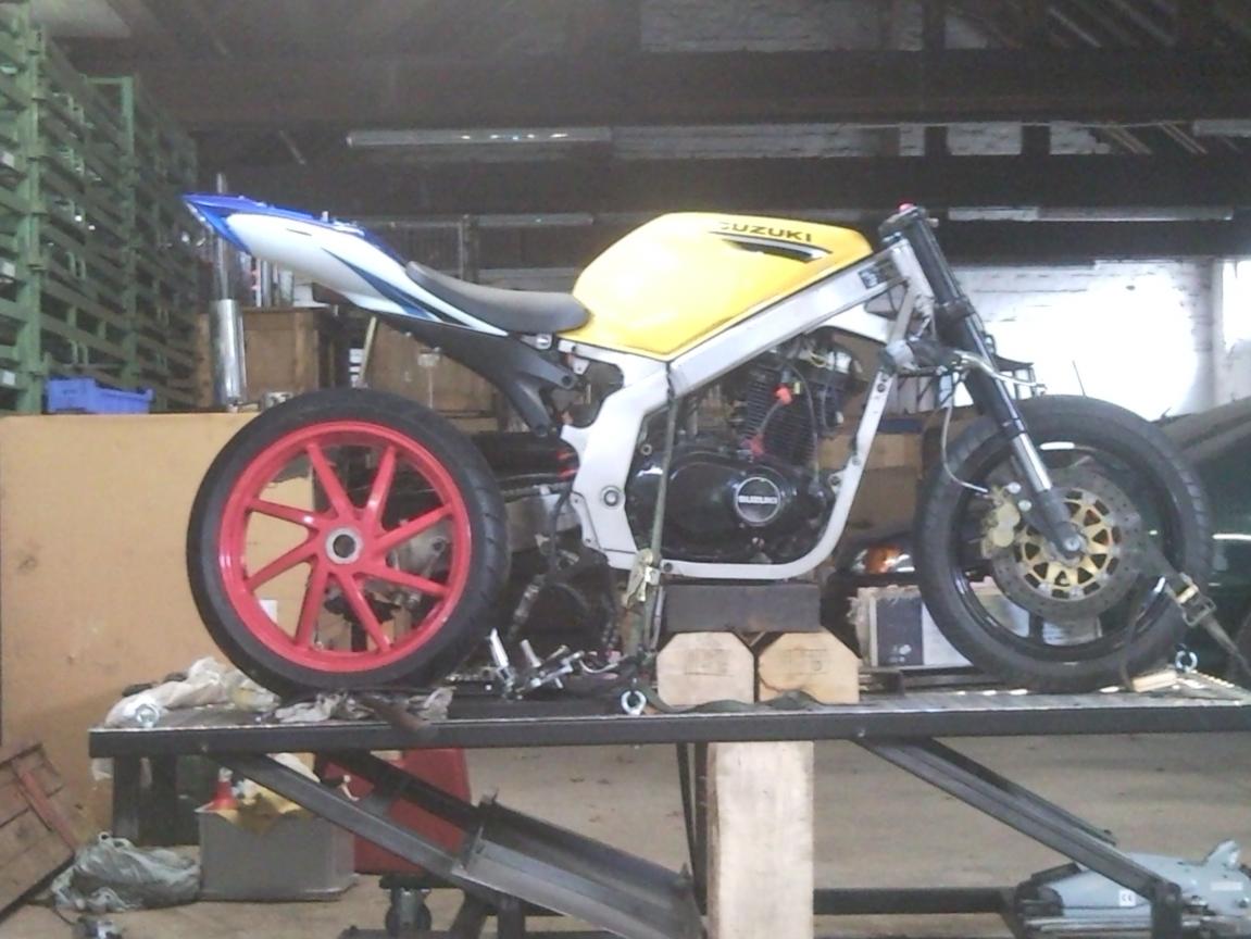 wolte ihre nur bescheid gaben, dass ich mit dem umbau angefangen habe.... es wurde so wie den von Verdi, mit einige änderungen..... den heck habe ich noch nicht fest, ich bin velleicht auf gsxr k5, 6, oder 7 (sind nur ganze kleinen unterscheid). Also was ich vor habe. Rahmen, umschweissen, leicht veränderungen VFR400 einarmschwinger (mit vfr750 rückdämpfer) einbauen.... RS 250 gabel einbauen Rs 250 vorderrad Brembo Bremse Ducati Monster clip-ons GS500F Tank (wenn ich endlich eine bekomme!!!) Heck rahmen passend für GSXR (ab ende 2004) Heck ändern. Untersitz auspuffanlage herstellen also falls bestimmt fotos erwünscht sind (wegen rahmen anderungen), jetzt bescheide geben....sonst mach ich nur nach grosse veranderungen.