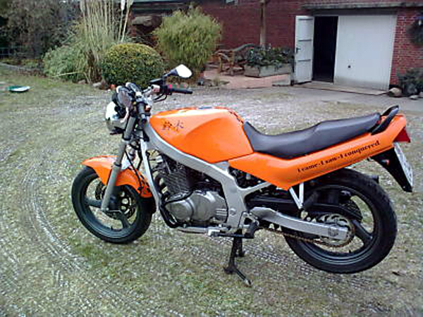 Suzuki GS 500 E, Bj '98, 02.2009 - 11.2011 - 39tkm ![]() Yamaha FZR 600 R, Bj '95, 3.2012 - 10.2013 20tkm Kawasaki ZX10R, Bj '13 03.2014 - 06.2015 - 11tkm Suzuki Gladius Bj '15 04.2015 - 10.2019 - 17tkm |
