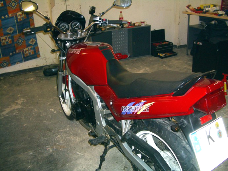 Suzuki GS 500, Baujahr: 1995, Laufleistung: 24.200 km Umbauten / Änderungen: - Wave-Scheibe vorne - Stahlflex vorne und hinten - Tiefergelegt und abgepolstert (für Zwerge wie mich) - LSL-Lenker - Mini-Blinker vorne und hinten - Kennzeichen versetzt (wegen der Mini-Blinker) - Puig-Scheibe - andere Spiegel