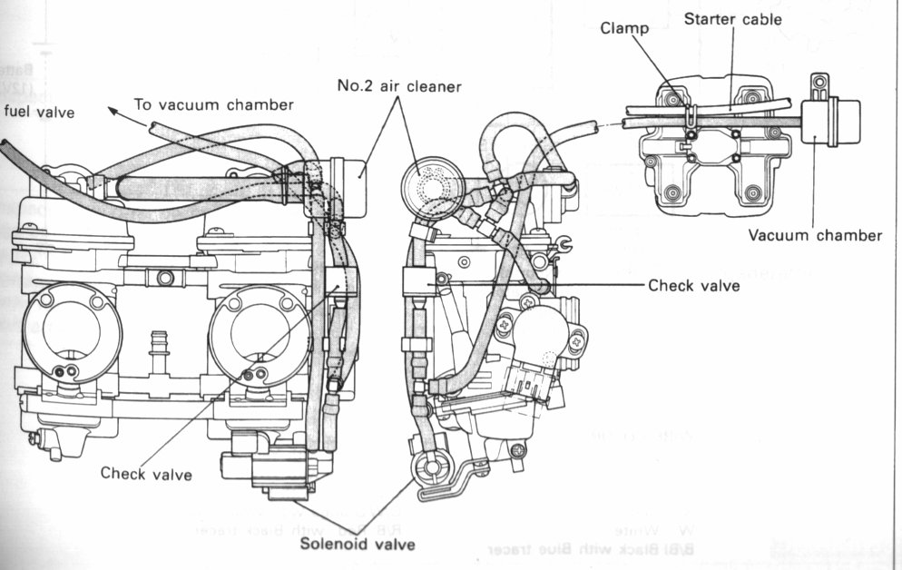 Siehe Bilder..... Das Magnetventil (Solenoid) findest du (falls vorhanden) unter dem rechten Vergaser....... |