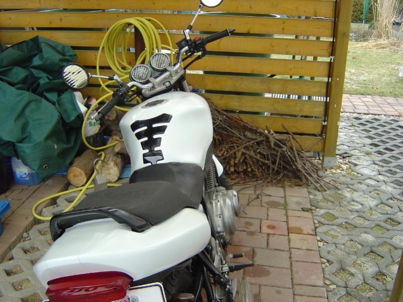 Tank und Verkleidung: vorher Schwarz/Silber, jetzt Matt Weiß.