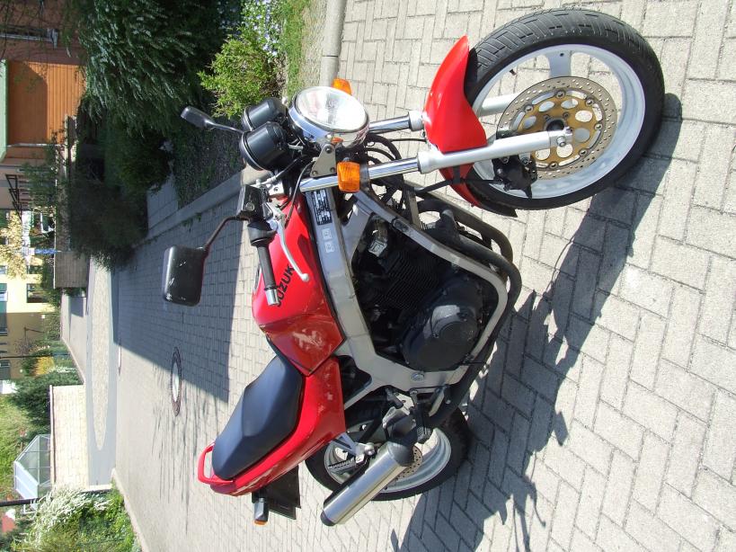 Freitag TÜV bekommen, angemeldet, gefahren Sie zieht gut durch. Samstag dann mal bissle geputzt versucht die Kleberreste vom alten Tankpad abzubekommen --> mäßiger erfolg. Nächste Sache die gemacht werden muss sind die Gabelfedern vorne Hier nun noch nen paar Bilder: |