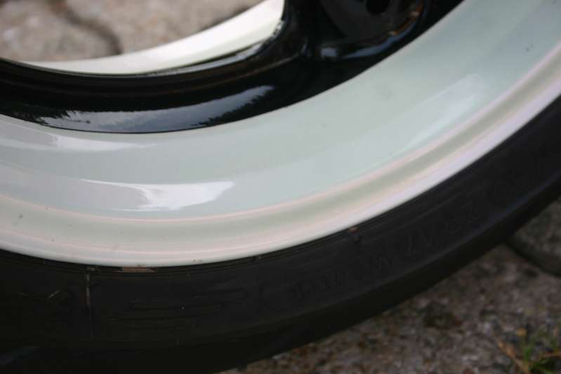 Die Felgen sind doch beide lackiert, vorne in Rahmenfarbe weil da der Fender in Mopedfarbe drüber ist, und hinten in Mopedfarbe, weil die Schwinge Rahmenfarbe hat.