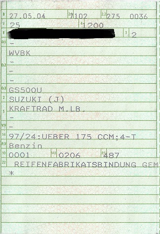 Wenn nichts eingetragen ist, war/ist die Kiste wahrscheinlich ab Werk gedrosselt (GS500EU).