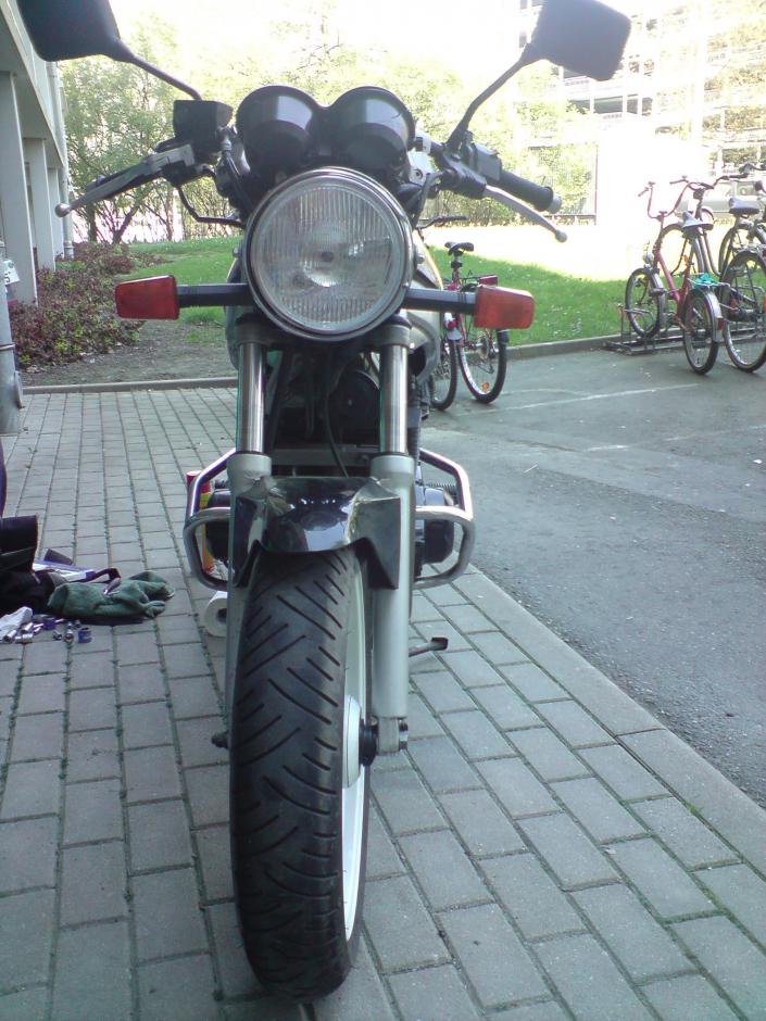 Mich hats vor kurzem inner kurve entschärft - nix weiter passiert n paar kratzer am motorrad un kombi. Allerdings ist auch mein Lenker links auf Tank geschlagen(war ne linkskurve) und mal ganz davon abgesehn das der Lenkeranschlag links jetz größer ist, ist das Vorderrad auch irgendwie schräg. Hat vielleicht irgendwer schon mal sone Erfahrung gemacht und weiß an was es am ehesten liegt,dass das Vorderrad so schräg ist? Die Felge wird sollte noch in Ordung sein(ich denke die steckt mehr weg) Ich habe auch kein schleifen der Bremse feststellen können. Wirds vielleicht reichen einfach mal die Gabel n bissl zu lockern un n paarmal einzufedern, dass sie sich wieder "entdreht" oder kanns noch andere Ursachen haben? Bild habsch auch dazu - is frontal aufgenommen wie man am scheinwerfer sieht nur Rad is halt iwie schräg.