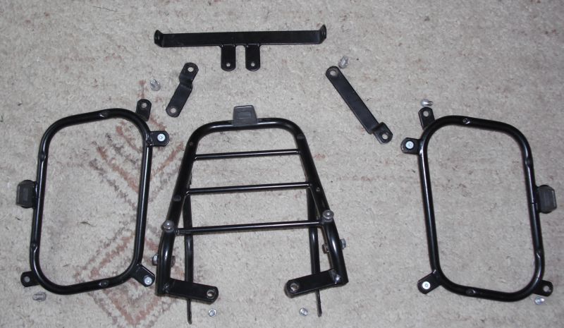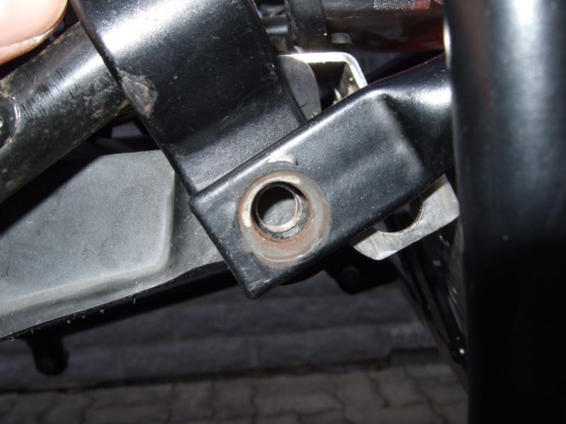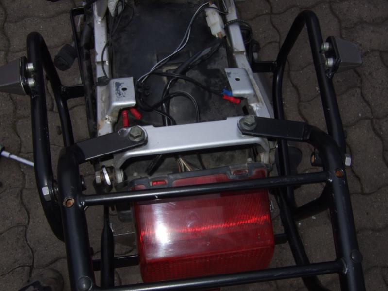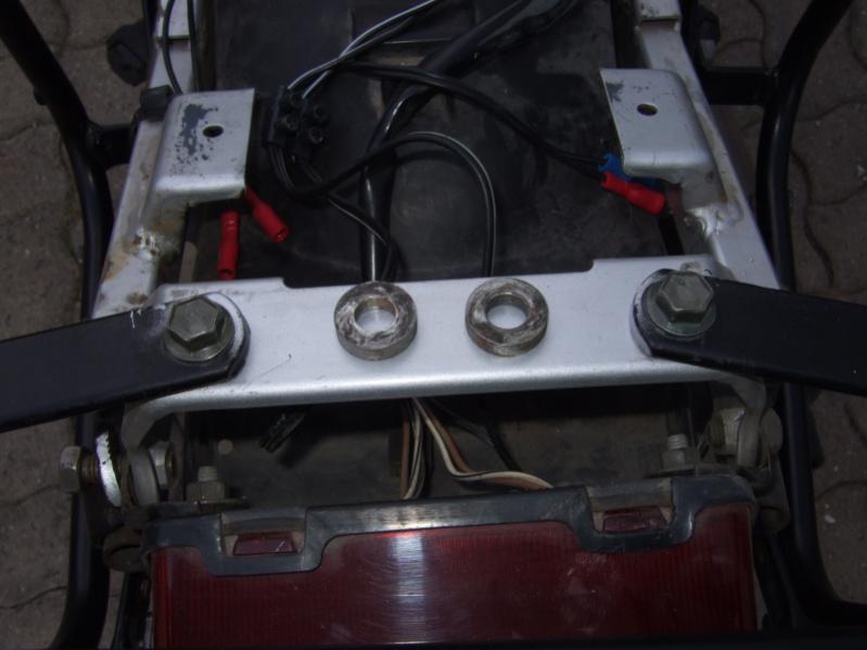 Der Vorbeistzer hatte das Topcase direkt mit dem Träger verschraubt, daher fehlt jetzt leider vom Topcaseträger das Bestigungszeug, also diese zwei Hülsen und der Halter wo der Koffer einrastet. Das gibts zum Glück noch nachzukaufen. |
