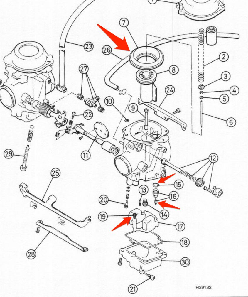 Pos. 15, 16 und 19 sind u.a. auch im Louis kit. Die #16 ist die Schwimmernadel mit Sitz. 15 die Dichtung vom Sitz und die 19 ist die Dichtung um den "Fuß" des Schwimmers. Die 6 ist die Düsennadel, die ich meine mit 40€.