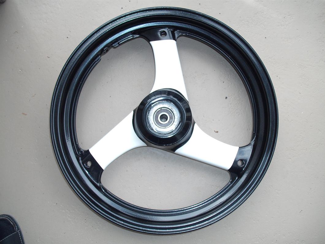 Schon etwas länger her, aber nun ist ein SBK-Lenker von LSL montiert. zudem habe ich den zweiten Satz Felgen umlackiert. Genauer gesagt, habe ich ein Projekt für meine Lehrlinge daraus gemacht. Das Design ist unter Abstimmung entschieden worden und wurde dann so umgesetzt. Das Ergebnis ist schon gut, wenn man bedenkt, dass die Jungs noch nie eine Lackierpistole in der Hand hatten. Nach mehreren Versuchen, mehrfaches wieder abschleifen und ca. 5 Schichten Klarlack sind sie bald Montagefertig.