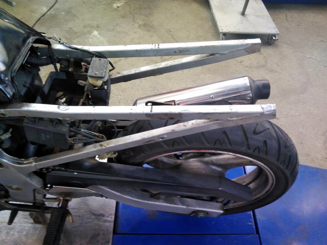 Wegen dem Auspuff find ich ne nette Idee aber teste erstmal der könnte schnell schleifen so tief, wie er jetzt sitzt. Nicht das es dich aus der Kurve hebelt. Bin gespannt was drauf wird ! =)