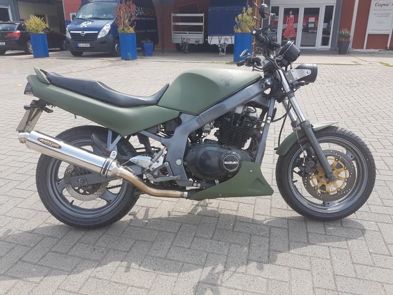 Was hat sich also in den letzten Monaten getan? Natürlich habe ich den hier bemängelten Bugspoiler tiefer gesetzt. Direkt danach gab es einen neuen Bremssattel vorne und andere Spiegel. Es gab Edelstahlschrauben für den Motor, eine neue Kupplung, einen neuen Kettensatz, die Schwingenlager wurden gereinigt und gefettet, den Umlenkhebel gab es von einer Bandit. Eine (bisher unlackierte) Sitzbankabdeckung gab es ebenfalls. Der Endschalldämpfer wurde um 10cm gekürzt, ein offener K&N Filter verbaut und das ganze mit einem Dynojet Stage 3 Kit abgestimmt. Klingt jetzt wie eine große. Die Kiste läuft deutlich besser als original, springt besser an und zieht aus dem Drehzahlkeller deutlich stärker durch. Alles natürlich im Verhältnis. Ich überlege noch, ob sich ein neuer Krümmer bzw. eine komplett andere Auspuffanlage lohnen würde, denn eigentlich möchte ich mir nächstes Jahr was größeres zulegen. Mal sehen. |