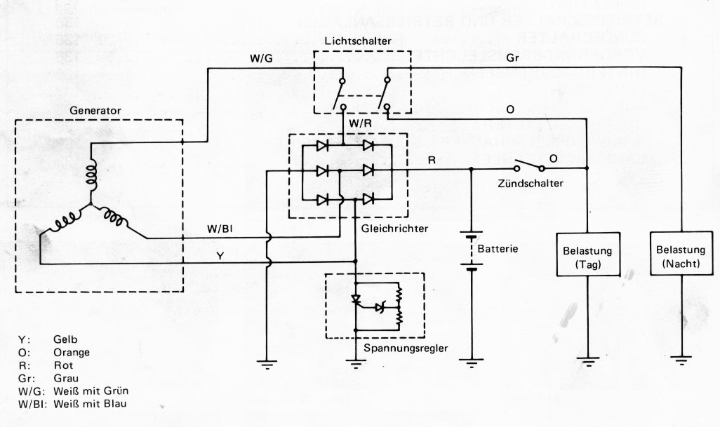 Elektrisch: Wird die Batterie geladen? Stirbt sie beim starten schon fast? Prüfe die Ladespannung (14-15,5V, 5000rpm). Messung der Leerlaufspannung siehe Bild. Du musst das Licht unbedingt einschalten, da nur dann die 3. Phase mitlädt. Falls du mehr infos brauchst bitte PN. Bin aber nur mehr heute erreichbar, da ich dann bis kommende WO in Kroatien unterwegs bin. |