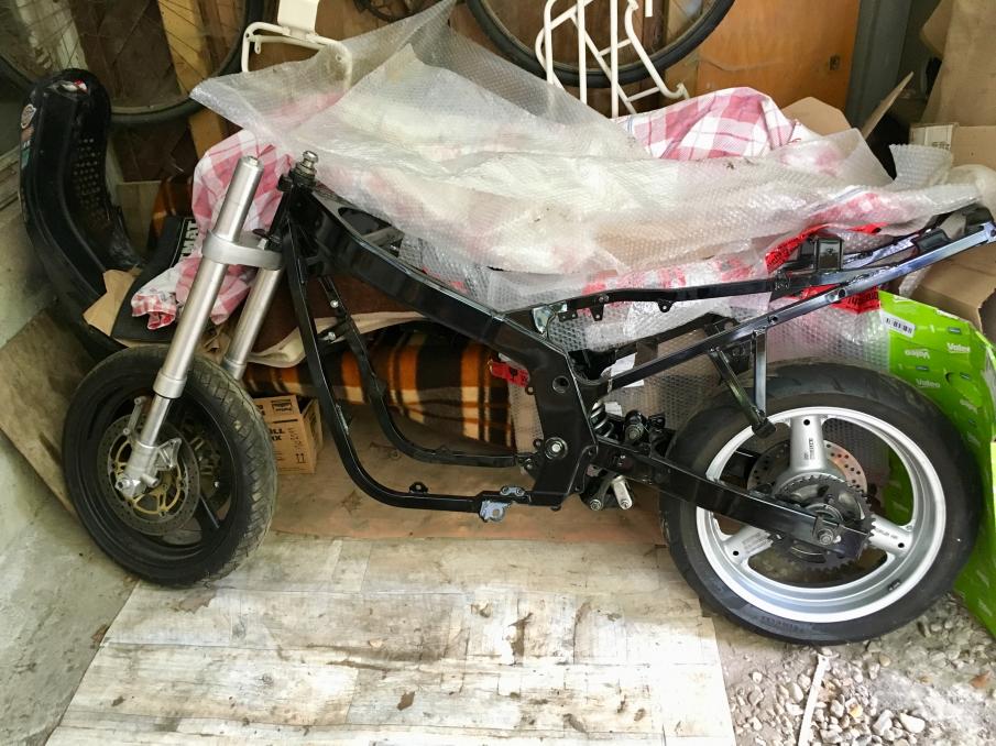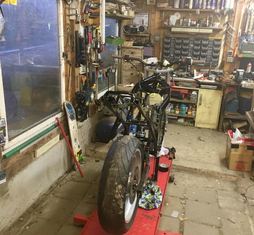 Morgen kommt dann der Motor und der Kabelbaum rein. Es sieht langsam wieder nach Motorrad aus |