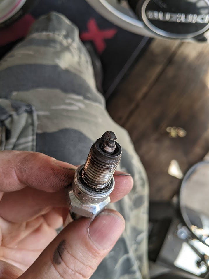 1. Die Zündkerzen waren beim Zerlegen Weiß. Jetzt nacht den Probefahrten sind sie immernoch Weiß.