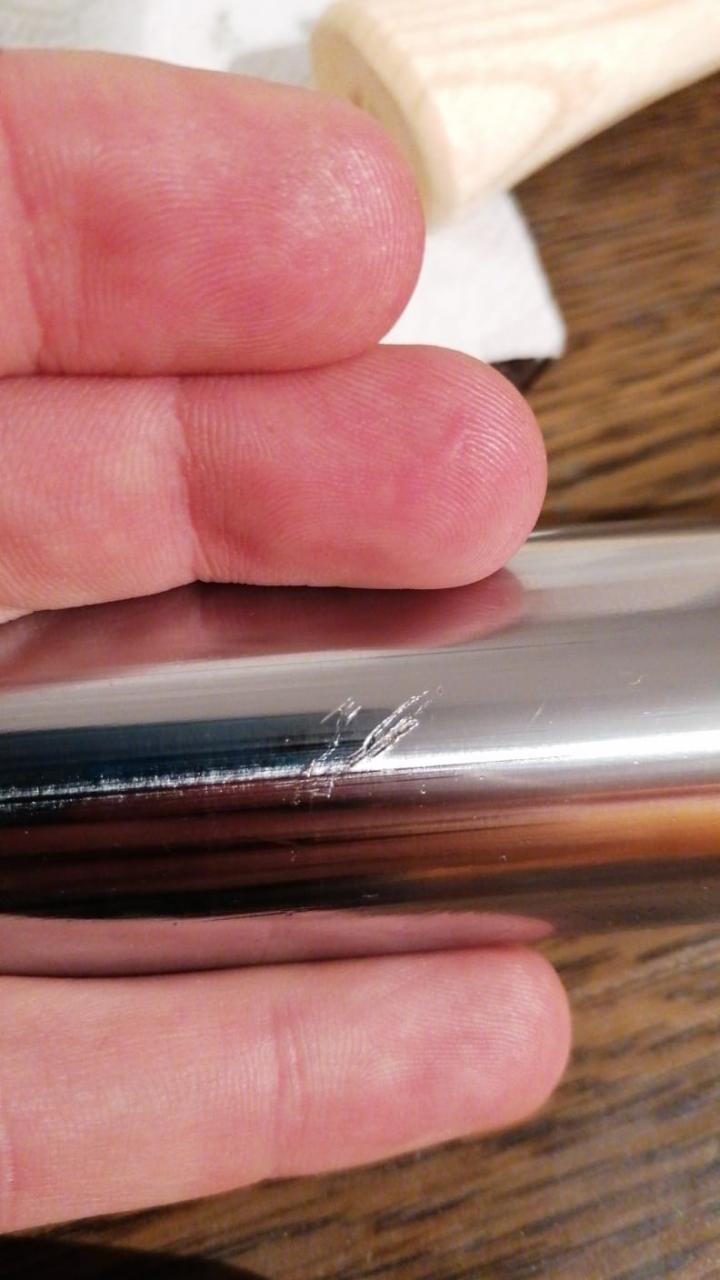 1000er Schleipapier und damit alle Grate wegschleifen. Erst dann auffüllen und aushärten lassen. Gerne Tage! Dann wieder schleifen,bis wirklich keine Unebenheiten mehr da sind. Aber die Lösung der Wahl bleibtein neues Standrohr. |