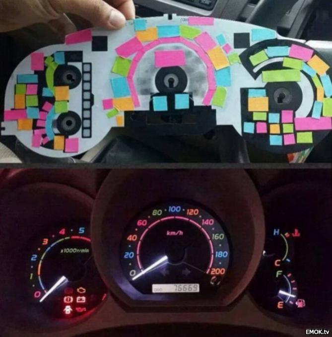 Das würd ich dann aber nicht mit Papierstücken sondern mit buntem Edding auf ner Plexiglasscheibe machen...