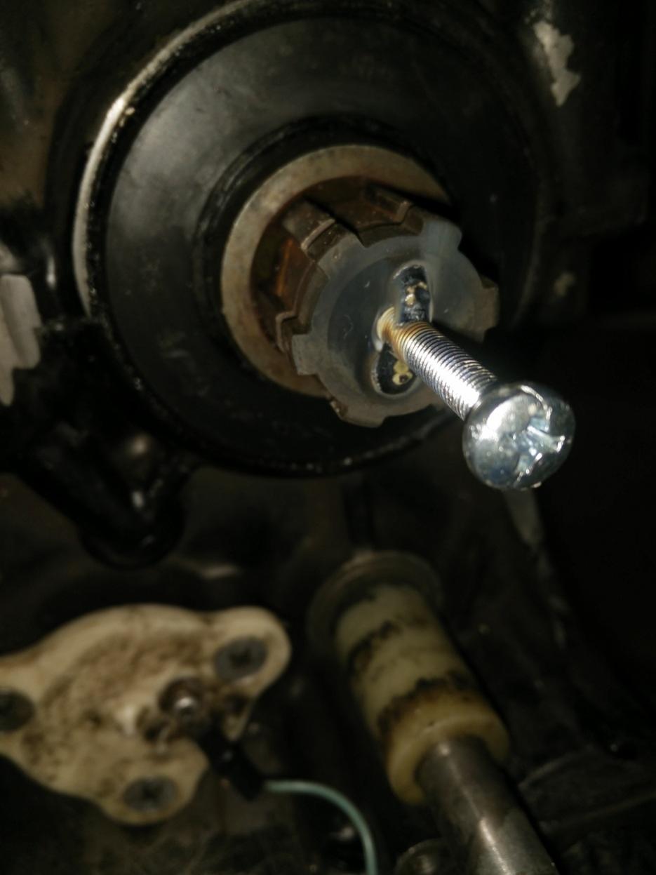 Als Grundlage zur Sicherung des Ritzels bei der Yamaha eine Schraube an/in die Zentrierbohrung der Getriebeausgangswelle geheftet.