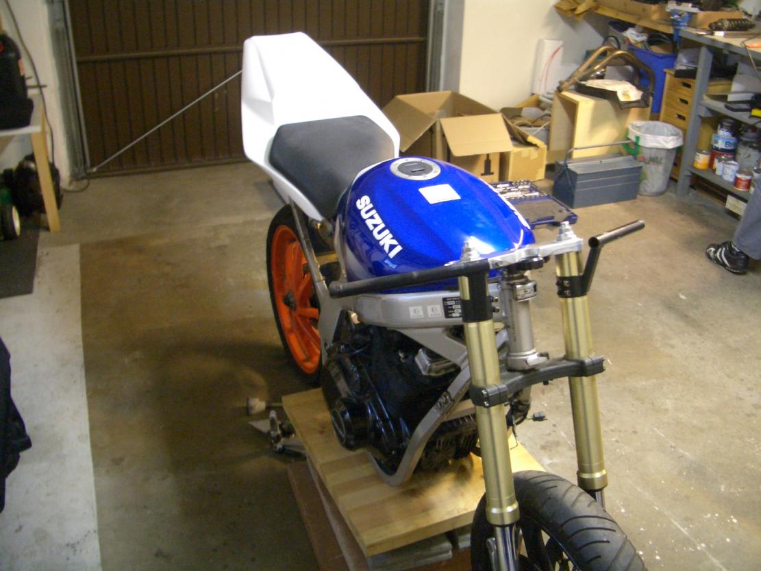 sobald ich in Hamburg endlich nen schraubenplatz hab wird sie nochmal überarbeitet ... tank & heck & auspuff kommen neu ... evtl. auch noch die gabel ... dazu dann tacho etc auch neu ... |