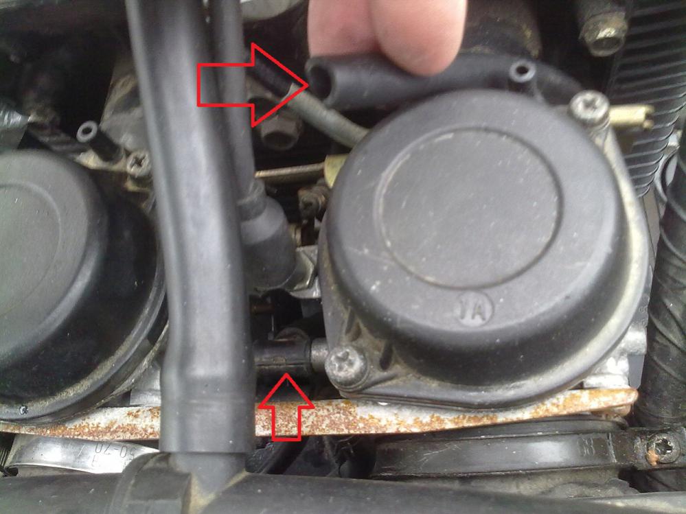 Ich hab folgendes Problem: Mein Mopped stand ca. 2-3 Monate ohne Tank draußen rum. Vorher lief es ohne Probleme. Danach gings nicht mehr. Mit vollem Choke sprang es zwar an, ging aber nach ner Zeit wieder aus. Je öfter man es versuchte desto länger blieb es an. (Vermutlich weil es dann langsam etwas warm wurde.) Wenn man allerdings Choke minimal weggenommen hat ging sie aus. Wenn man minimal Gas gegeben hat ging sie ebenfalls aus. Egal mit wie viel Gefühl ich das probiert habe. Jetzt habe ich mich mit meinem Vadder mal dem Problem gewidmet. Tank aubgebaut alle Schläuche kontrolliert usw. Zündkerzen sahen auch normal aus. Komisch war nur dass im Luftfilterkasten das Benzin stand. Haben wir trocken gemacht, aber noch nicht wieder nachgeschaut ob was nachgelaufen ist. Verwirren tut uns aber ein Schlauch (siehe Anhang) der da lose nach unten hing...Wenn man in den Schlauch reinpustet läuft das Motorrad ohne Probleme. Man kann Gas geben, es läuft gut im Stand etc. Wenn man den Schlauch zuhält stirbt der Motor ab. Genauso wie wenn man dran saugt. Meine Fragen sind nun: Weiß jemand woran das liegen könnte dass das Ding nicht mehr läuft? und Was ist das für ein Schlauch der die beiden Vergaser verbindet? Muss der irgendwo dran? Danke schonmal für die hoffentliche Hilfe :) Liebe Grüße, Tobias Bilder: Anhang 9328 (Der Schlauch links oben ist Reserve und der links unten ist Normal) Anhang 9329Anhang 9330Anhang 9331 [SWM: hab die Bilder mal im Thread angehangen] |