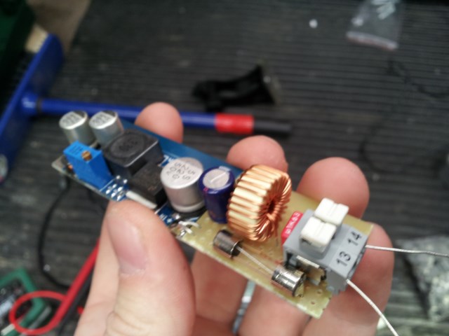 Die Lösung mit gekautem Wandler ist Elegant. Aber wieso ist der verlinkte rot und dein gekaufter blau. layout und Schaltplan schauen auch anders aus. Ausserdem: ist dein Elko notwendig? Vor dem Regler ist doch eh schon eins eingebaut, genauso der Folienkondensator (unter der Annahme das er auf deiner gekauften Platine schon drauf ist). Die Sicherung ist sicher nicht optimal. Meine Freundin hatte lange solche Sicherungen in ihrer Schwalbe. Ging auch gut. Also passts erst mal. Staub und Wasserdicht is dein Projekt nicht, muss es aber auch nicht zwingend sein. Vorteilhaft ist ein gewisser Schutz schon. Dafür findest du sicher auch eine Lösung. Schön wäre noch ein Schaltplan deiner Eigenbauplatine für alle die die Schaltung nicht kennen. Bei deiner Spule und den 2 Elkos hast du so einen Tiefpass, da brauchst du auch keine Z oder Supressordiode mehr. @ Saugwurm. Bei der Sicherung hab ich mich ein wenig Falsch ausgedrückt. Du hast Recht. Jedes Gerät sollte seine eigene haben zu seinem eigenen Schutz bzw. Des Handys. Mir lag es nicht an dem Schutz des Geräte sondern an dem Schutz vor der Batterie (angeschweisste Schraubenschlüssel,...) und der Gefahr die von ihr ausgeht. |
