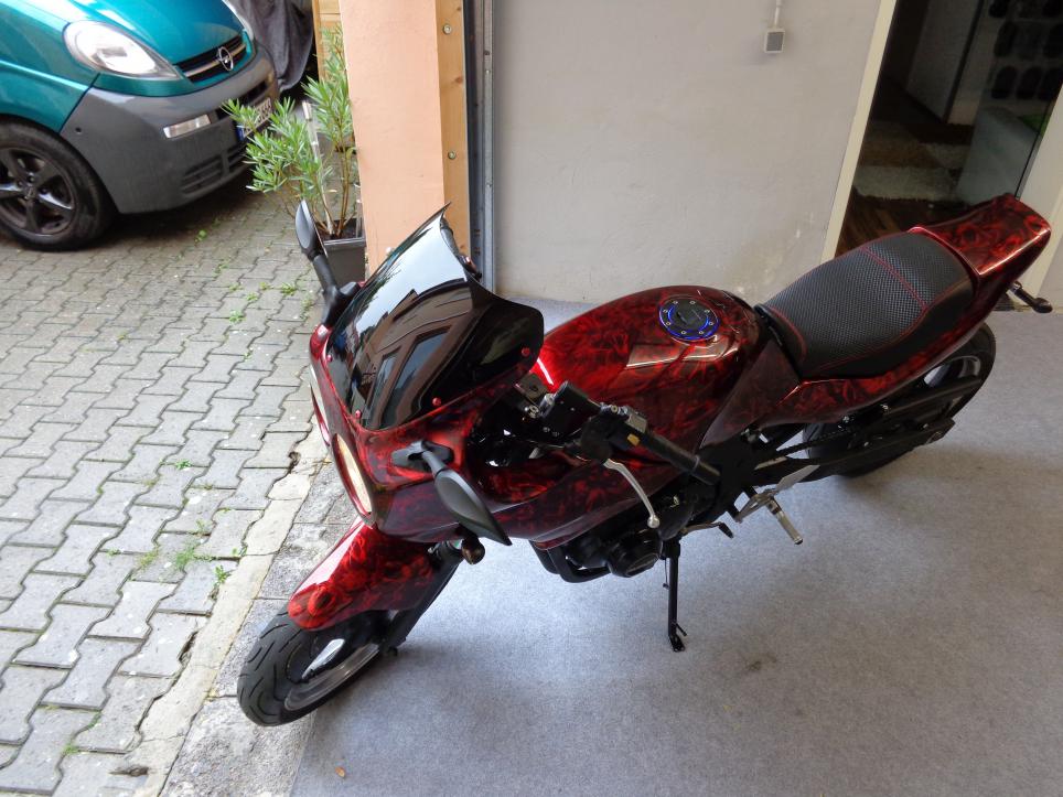 So, hier die versprochenen Fotos, Bike ist vorerst mal fertig. Leider ist hier heute das Wetter beschissen, daher nur Garagenbilder:(