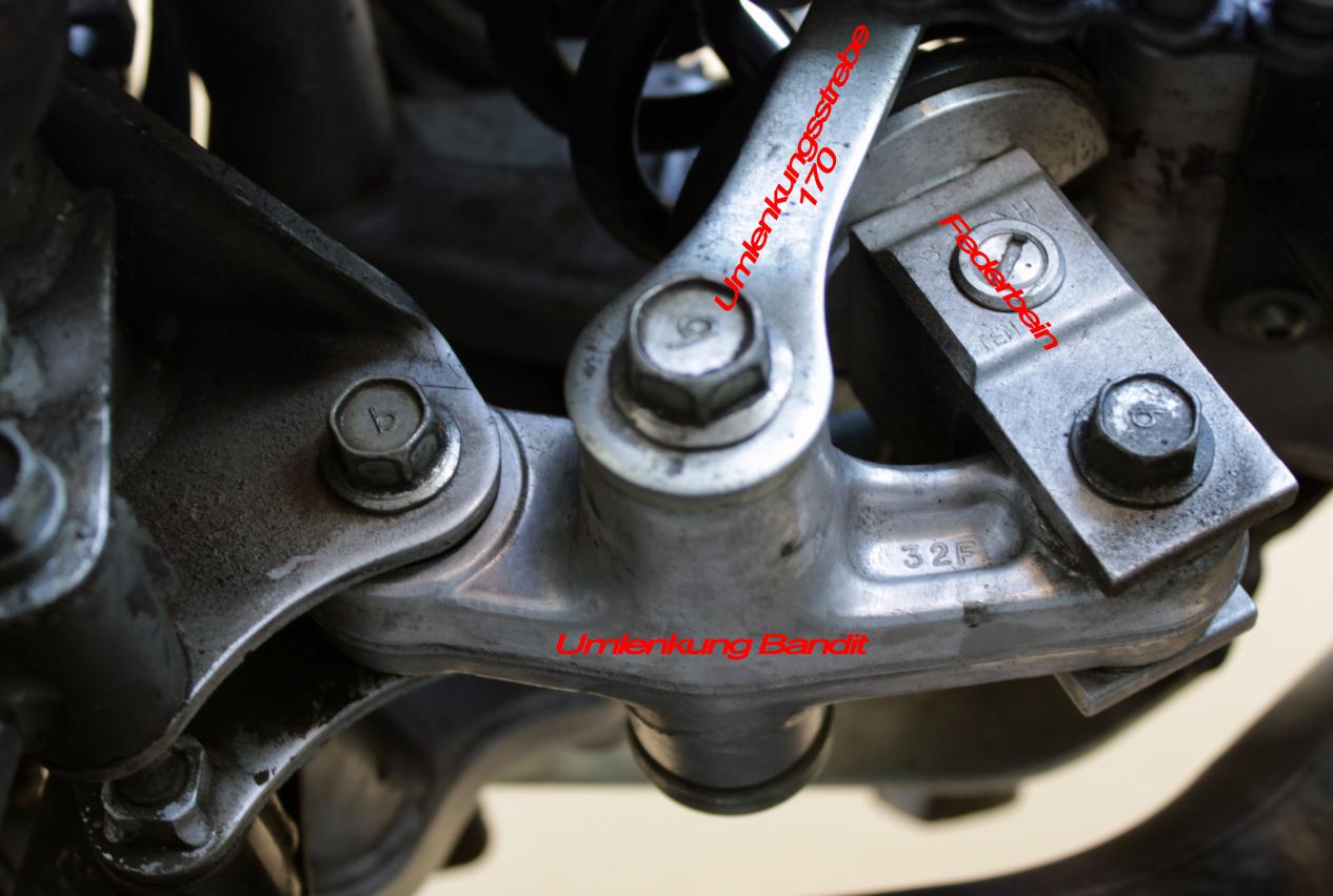 Meine frage wo bekomme ich die UMLENKSTREBEN mit 170mm Lochabstand? (habe gemessen ca.180mm) Damit das federbein nicht die schwinge im ausgefederten zustand berührt. Wollte es mit der gs umlenkung probieren ob es geht sonst nehme ich es von der bandit Danke im Voraus MFG Prinzistanbul |