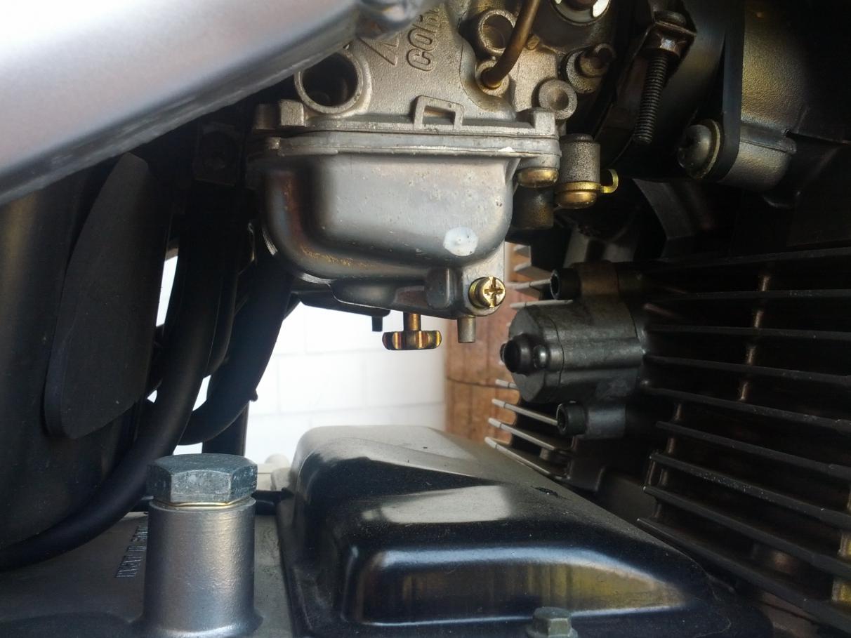 Außerdem hab ich kein Bild gefunden auf dem man die Einstellschraube für die Leerlaufdrehzahl sieht, ich hab mal eins gemacht, ist es die in der Mitte die nach unten zeigt? Wie soll man die denn bitte drehen ohne sich die Finger zu verbrennen?