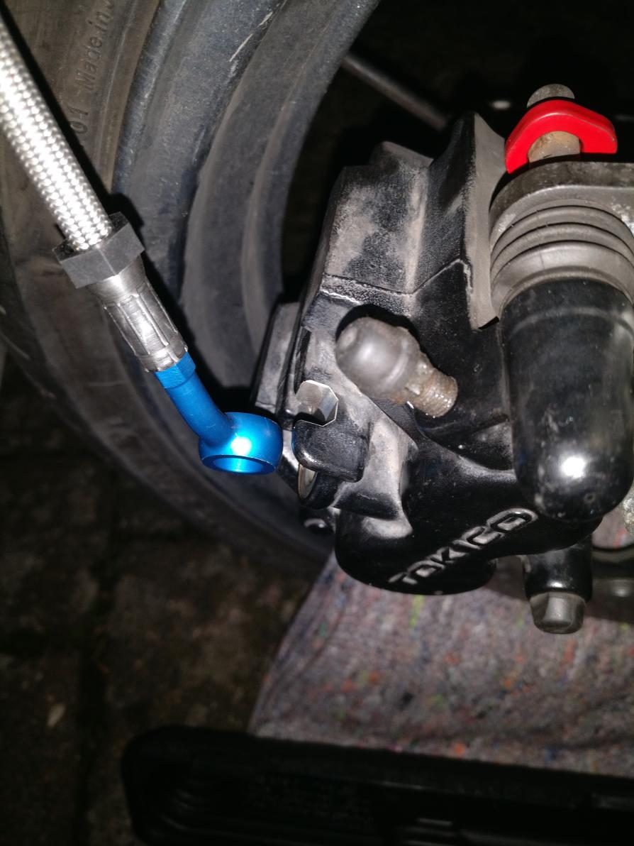 Als ich die Vordere verlegt habe ist mir jedoch aufgefallen das der Anschluss um 90° verdreht zum Bremszylinder liegt.