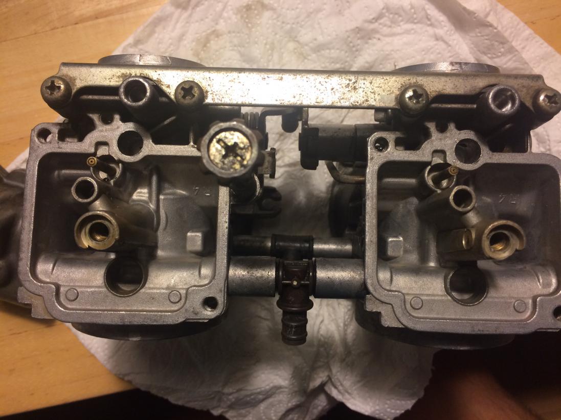 So, für heute Feierabend, alle Düsen, etc. gereinigt, ebenso den Vergaserkörper selber. Sieht weitaus besser aus als vorher. Morgen wird die ganze Chose wieder zusammengebaut und bald mach ich mich an den rostigen Tank. Düsen waren nicht verstopft oder ähnliches, denke mal dass der Rost aber vlt das Überlaufen des Vergasers durch Verstopfen des Ventils hervorgerufen haben könnte? Bin mir irgendwie immer noch nicht sicher, wie Benzin ohne laufenden Motor durch das Venturirohr, vorbei an der Drosselklappe in den Brennraum und dann den Zylinder und Ölwanne laufen konnte.