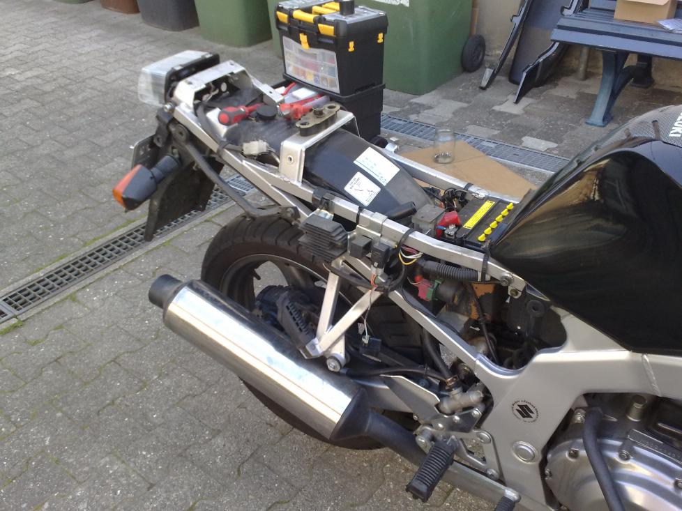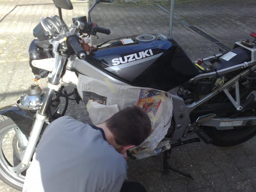 ich würde hinten noch den unteren Spritzschutz entfernen und den Rückstrahler zwischen Rückleuchte und Nummernschild setzen. Warum habt ihr den Sturzbügel nicht abgenommen? Also zum lackieren? |