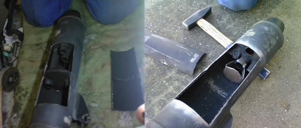 habe heute was tolles im Netz gefunden in folgendem Video: https://www.youtube.com/watch?v=LMTTBQzJ1Core Der Umbau wird mit zwei Bilder gezeigt, habe das mal in ein Bild gepakt damit man sich das in Ruhe ansehen kann... Dazu habe ich folgende Fragen: die Rohre rechts und links machen wohl im nicht Sichtbaren hinteren Teil einen Knick und kommen wieder nach vorne zurück, Dann geht das Abgas durch das mittlere Rohr direkt "ab durch die Mitte" nach draußen - Korrekt? Warum haben die noch ein Blech vor das "nach Außen Rohr" geschweißt? - Hätte man nicht einfach mit der Flex eine Seite der vorderen Wand wegsäbeln können? Dann würde der Schall auch erstmal vor die Wand knallen... müsste halt nur um die Ecke Wie würdet ihr das machen mit dem Umbau? Die 50ccm 4Takt Cross Maschine meiner Tochter (Honda DAX Motor) hört sich super dumpf und cool an - würde das gerne auch bei der GS haben. Um so dumper der Ton um so besser... Donnergrollen quasi Geht jetzt auch nicht um "ööööhm das darf man aber nicht..." ich fahre damit natürlich nur auf einer Rennstrecke Gruß aus Kölle Lazy |