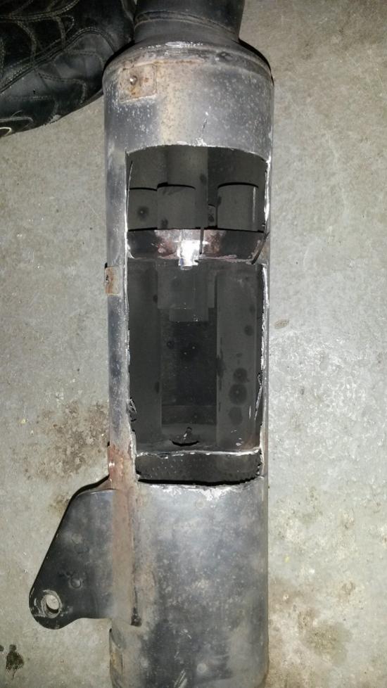 Der Originale ist ein Reflexionsdämpfer. Ich denke mal einen dumpfen Klang bekommst Du nicht hin, wenn Du da einfach das innenleben raus machst. Selbst mit diesem reingeschweißten Blech nicht. Schmeis mal was in einen leeren Raum und schmeis mal was in einen Raum mit Teppichboden rein. Ich behaupte den Effekt hast Du auch bei so einem ESD. Wenn, dann müsstest Du was ähnliches reinbringen wie in einem Absorbtionsdämpfer. Hier sieht man sowas: http://www.apriliaforum.de/250-ccm-r...ar-bilder.html Ist zwar ein 2-Takter, aber grundsätzlich gleich. Hier ein 4-Takter: https://motoxonline.de/service/technix.html Einfach mal nach "Auspuff stopfen" suchen. Dann klingt der sicher dumpfer. Hier..super Beitrag: http://www.vtr1000.de/forum/showthread.php?p=994210 BOS sind ja eher welche die Dumpf klingen. Viel Erfolg. |