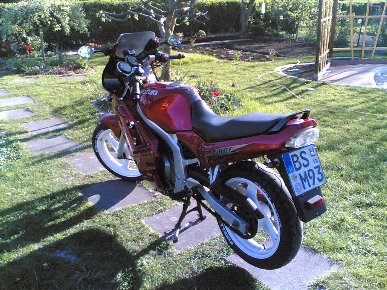 Heute kam per Post ein (gebrauchtes) LED-Rücklicht "Plug & Play". Leider war die Fassung verbeult, sodass kein dauerhafter Kontakt hergestellt werden konnte. Abhilfe: Zange(n) + Lüsterklemme(n) 1. Versuch...Bremslicht leuchtet immer 2. Versuch...so soll es sein Also alles wieder brav zusammengebaut, Kabel ordentlich gekürzt und verstaut und fertig. Aufwand: ca. 45 Minuten Ergebnis: siehe Bilder Fazit: ca. 15€ günstiger als das Neuteil, hat sich mit dem kleinen Arbeitsaufwand gelohnt [attachment=3:2oj0xjaq]DSC01788.JPG[/attachment:2oj0xjaq] [attachment=2:2oj0xjaq]DSC01790.JPG[/attachment:2oj0xjaq] [attachment=1:2oj0xjaq]DSC01792.JPG[/attachment:2oj0xjaq] [attachment=0:2oj0xjaq]DSC01793.JPG[/attachment:2oj0xjaq] Was ist sonst noch gemacht? Superbikelenker Stahlflex vorne Mini-Blinker Edelstahl-Kettenschutz Also bis auf ein paar feine Kleinigkeiten original |