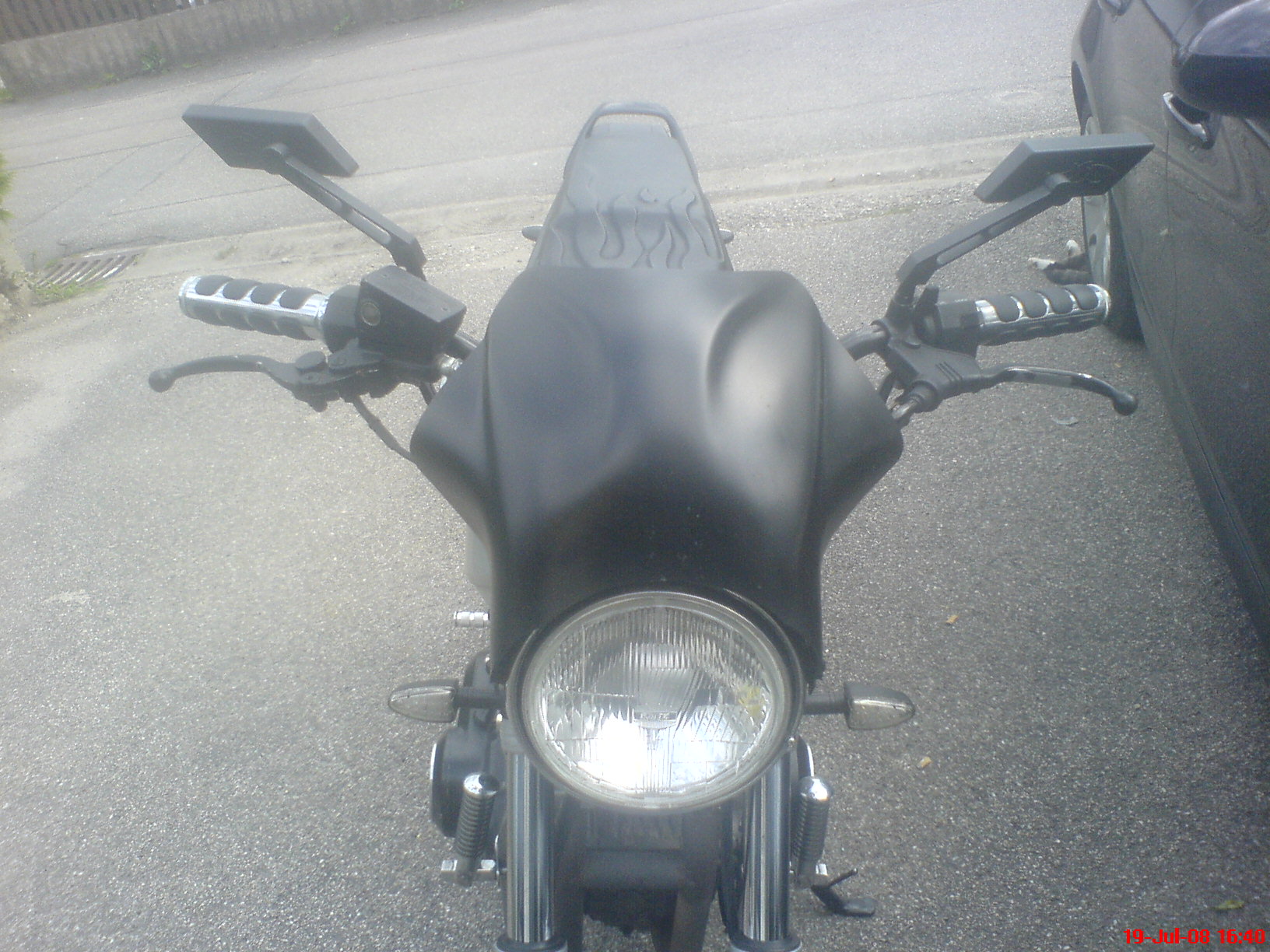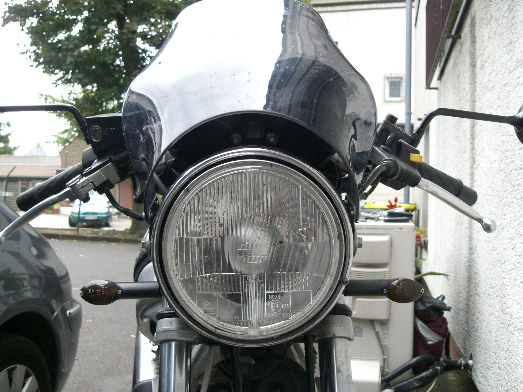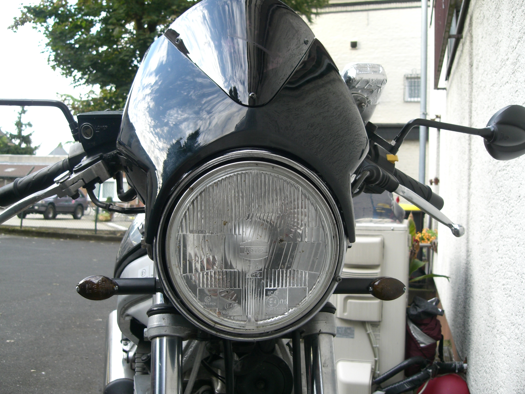 Ich hab im Sommer schon mit verschiedenen Lenkerverkleidungen experimentiert (Gimbel, GIVI) alles würg. Nackig sieht sie am besten aus. Daher suche ich krampfhaft nach etwas, das nicht so auffällt. Hatte hier schon mal Fotos der getönten "Papstmütze" im montierten Zustand gesehen. Ich dachte, die kommt in klar besser. Ein Irrglaube.
