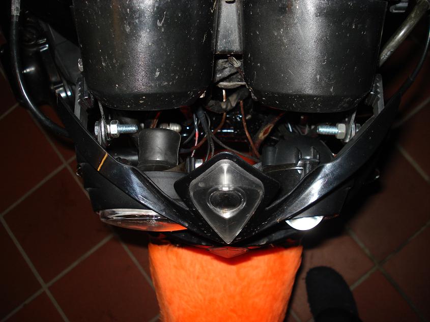 Die lampenmaske hat ja von vorn echt irgendwie nen reiz...aber von der seite...ich weiß haste probiert die näher an die gabel zu setzen oder wolltest nur die orginalen halter wieder hernehmen?