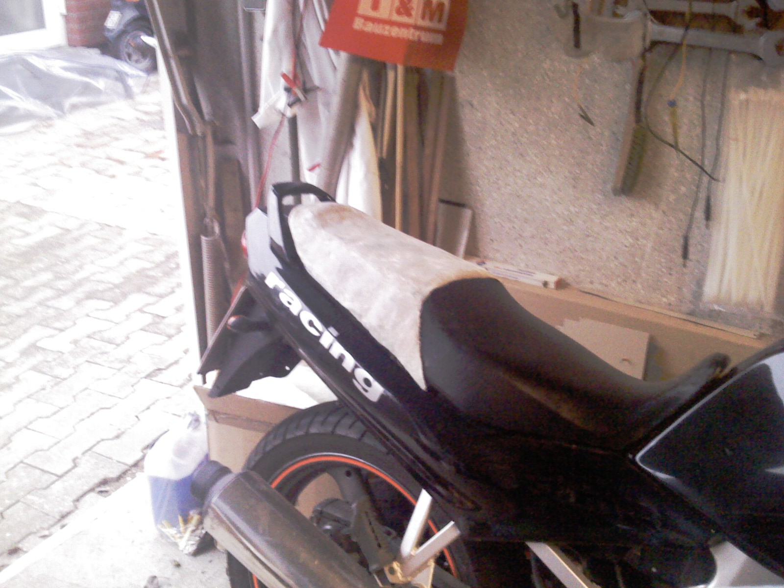 die blaue abdeckung is irgendeine fertigsitzbank gewesen ... hab nur die öffnungen für den sozius griff im heck zugemacht ...