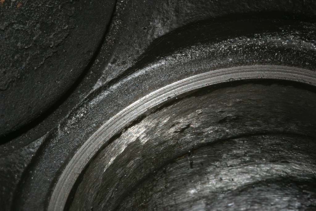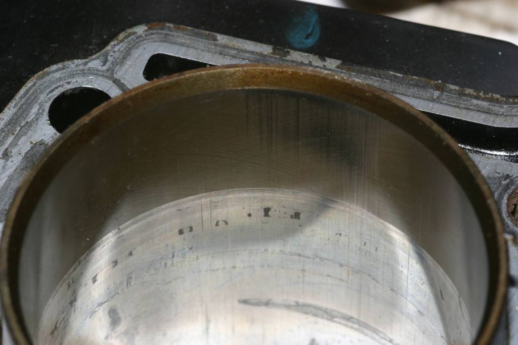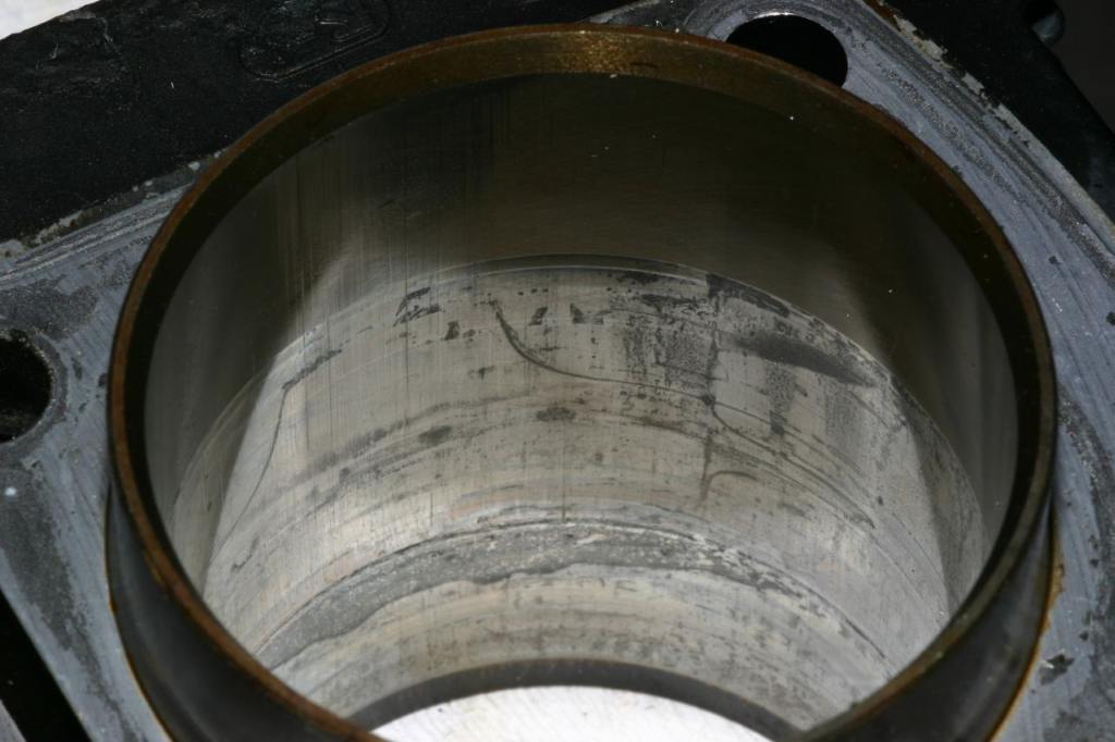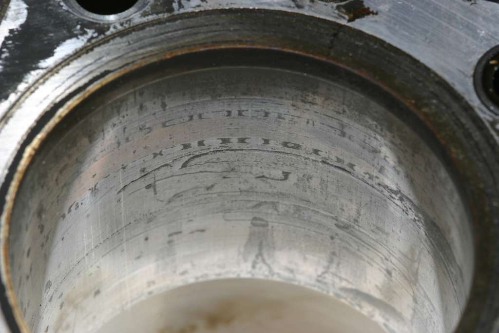 Die Laufflächen haben aber ordentlich Standspuren. Besonders die eine Stelle sieht so aus als wäre der Kolben dort mal festgerostet gewesen. Lässt sich mit dem Finger auch sehr gut erfühlen. Außerdem sieht man ja sehr gut, dass der Kreuzschliff komplett weg ist. Inwiefern das schlimm ist - keine Ahnung.