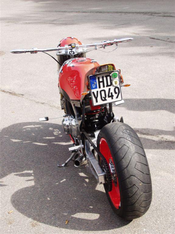 Bj 1997 41800 km Umbau: -Griffe und Lenkerenden -Rauchglas Blinker -LED Doppelrücklicht auf poliertem Riffelblech -Felgenbänder so die Bilder sind schon älter, am letzten Samstag hab ich sie leider zerlegt, also wird im Winter vorraussichtlich ein Umbau auf Naked stattfinden. Mal schaun wies euch gefällt |